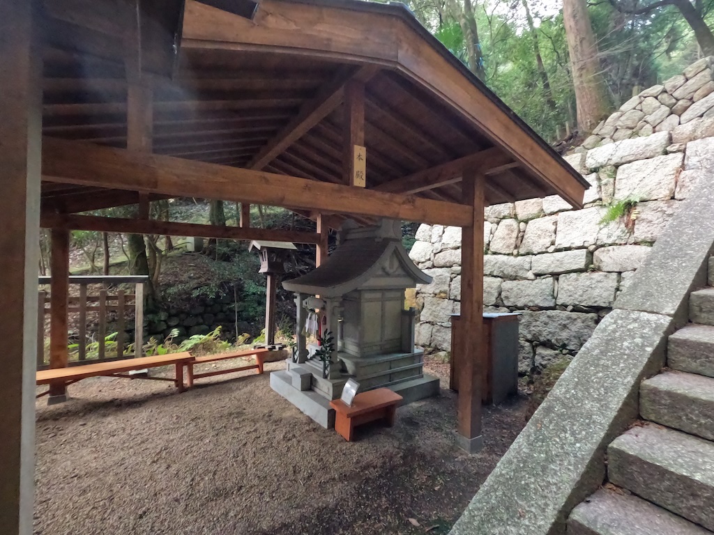 石造流造の本殿になります。周囲の石垣と相まって全く違和感を感じないのですが、これだけ歴史のある神社としては少し寂しい感じになってしまいます。