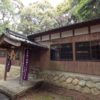境内社の稲荷社の鞘堂になります。屋根のゆがむなど老朽化が進んでいます。石が黒くなっているのは家事の影響なんでしょうかね。