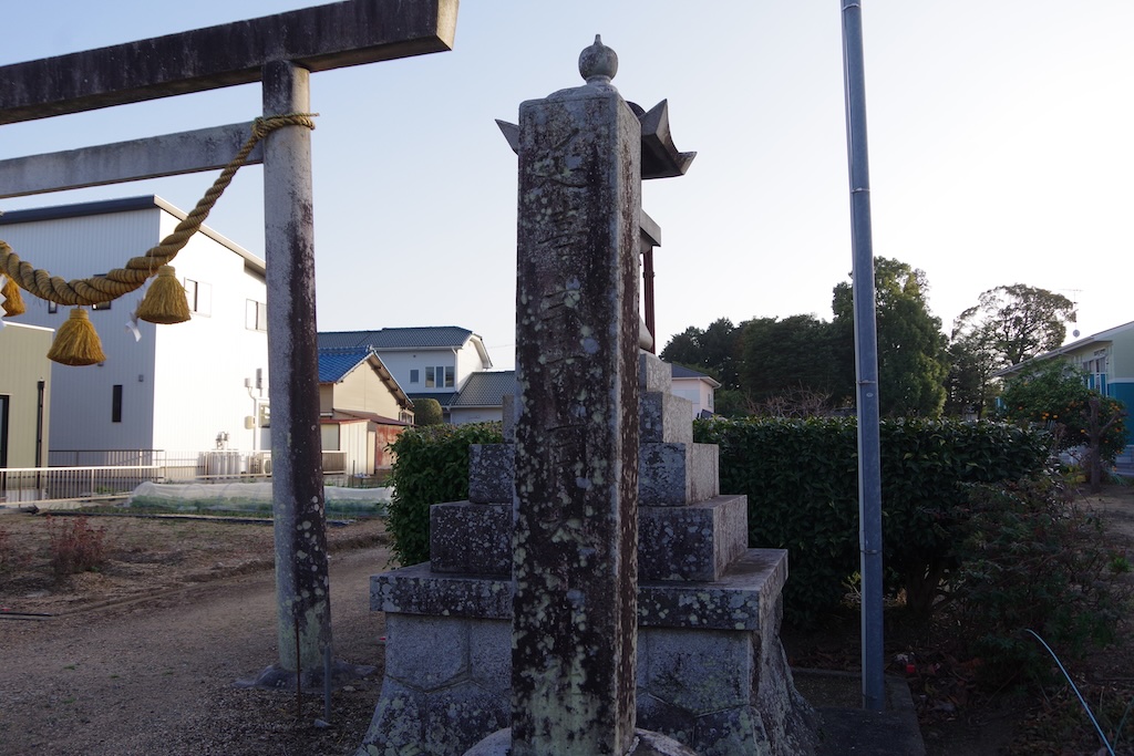 延喜と合わせて彫られた社号標になります。参道入り口には石造灯籠一対、神明鳥居、そしてこの社号標が据えられています。