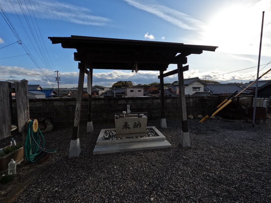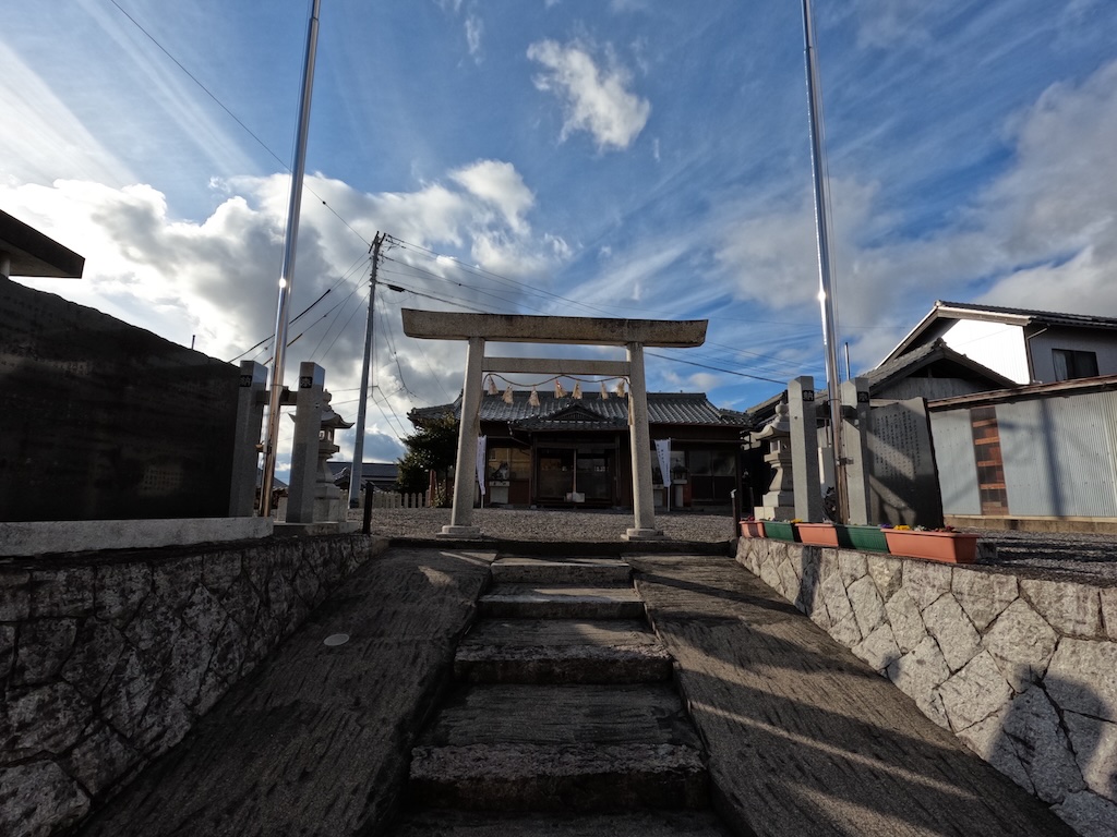 川合町の昔からの集落の中心となるであろう場所に須佐之男神社が鎮座しています。幟竿が閉まっている棚?の前あたりが広くなっているのでここに車を止める事ができそうです。川合町の旧集落?の周囲は造成工事による区画整理された住宅地が広がっていて、新旧の集落の対比ができてしまいます。