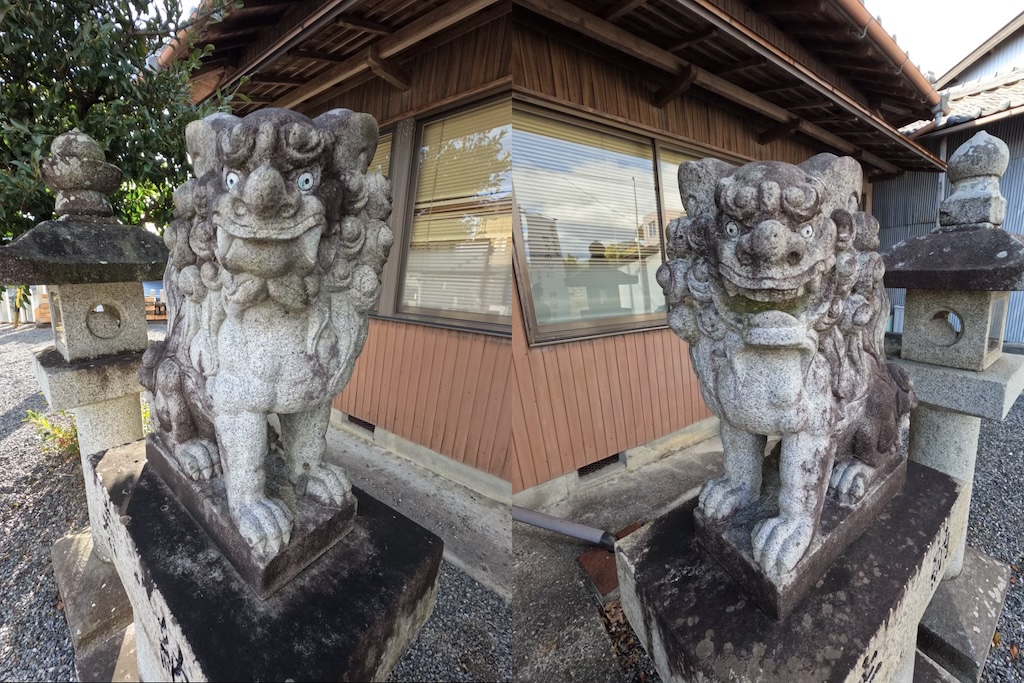 昭和五十年代生まれの量産岡崎型と呼ばれる狛犬一対になります。岡崎出身の自分にとっては非常に馴染みのあるお姿となっていて安心感を抱く事ができる狛犬です。